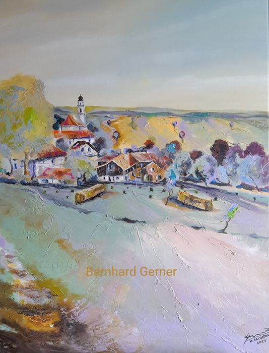 Das Gemälde "St. Salvator" von Bernhard Gerner ist ein Original-Kunstwerk, handbemalt in Öl auf einem Vollholzkeilrahmen. Mit seinen Maßen von 80 x 60 cm ist es ein zeitgenössisches und einzigartiges Wandbild, das in jedem Wohn- oder Arbeitszimmer einen besonderen Akzent setzt. Das Motiv zeigt eine Landschaft in warmen braunen und türkisen Tönen, ideal für Liebhaber von Bäumen, Wald und Architektur. Das Gemälde ist signiert vom Künstler und wird direkt vom freischaffenden Künstler selbst bezogen, somit ein exklusives Kunstwerk für Kunstliebhaber.